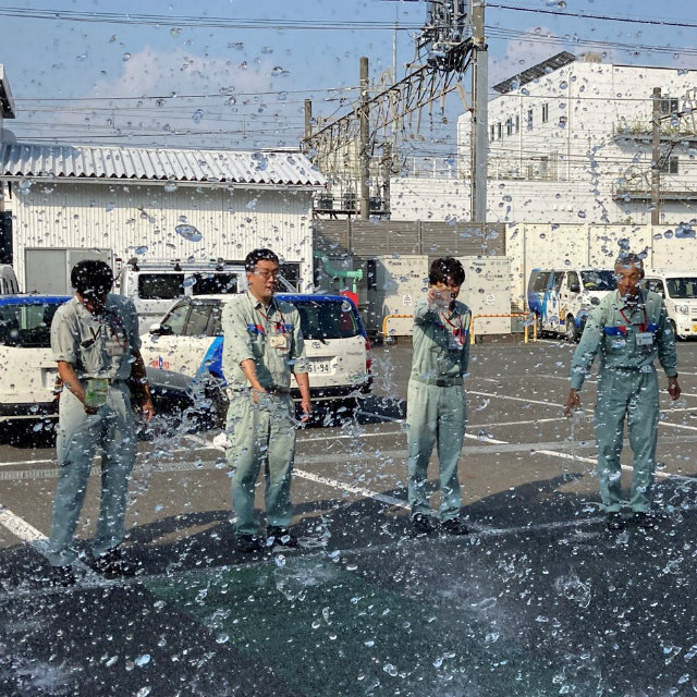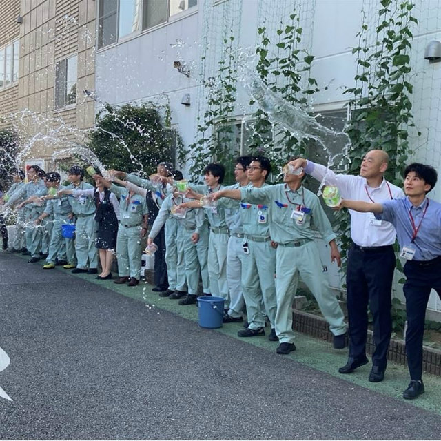 《感想:約150リットルの雨水を社員21名で構内の駐車場に撒き、涼しさを実感しました✨