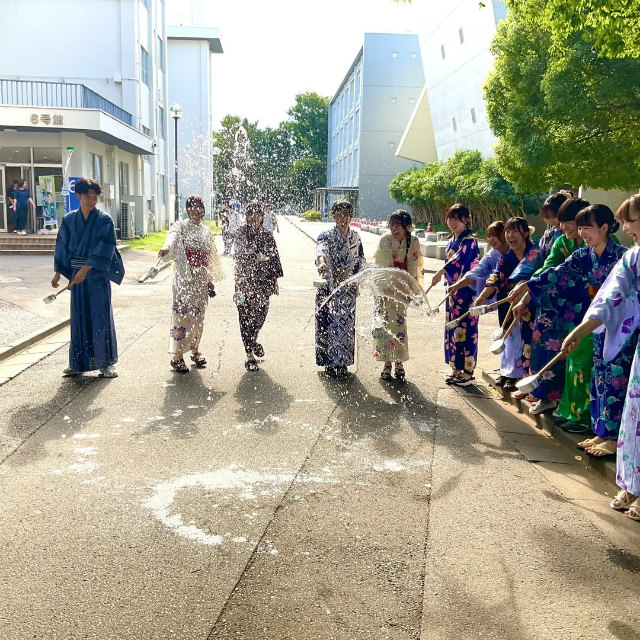 当日の気温は35.8度で、とても暑いなかでの実施となりましたが、打ち水で暑さが少し和らいだように感じました》