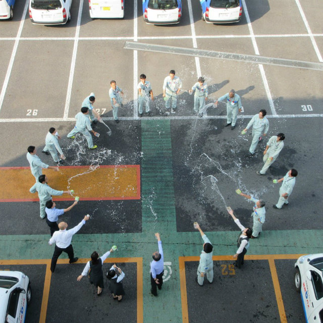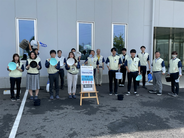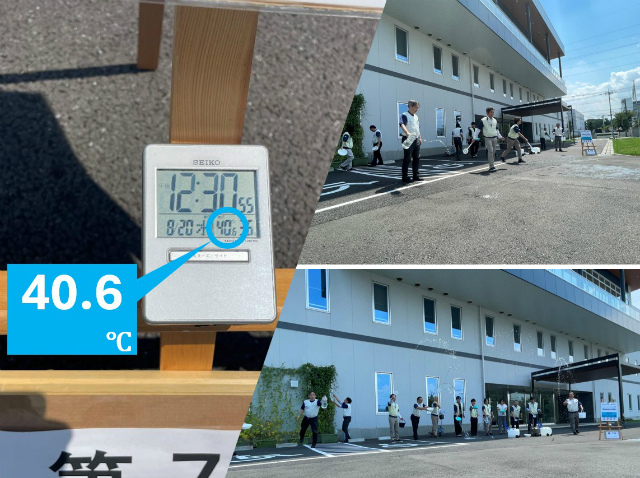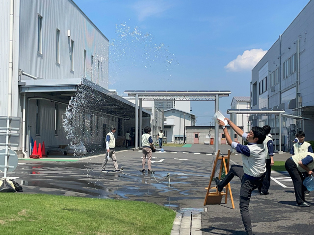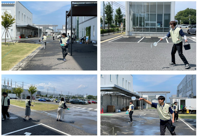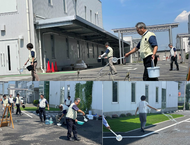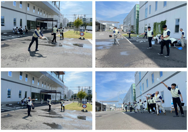 《感想:約150リットルの雨水を社員21名で構内の駐車場に撒き、涼しさを実感しました✨